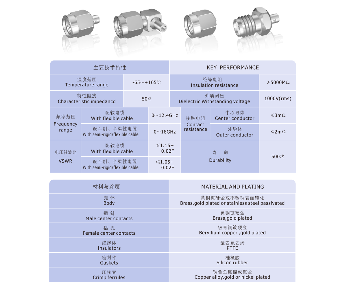 Series SMA are very popular thread coupling miniature coaxial connectors, which have the excellent performances of high reliability, high mechanical strength, high durability, and optimum electrical properties, are widely used to connect RF coaxial cables for mobile communication equipment and electronic communication instruments.