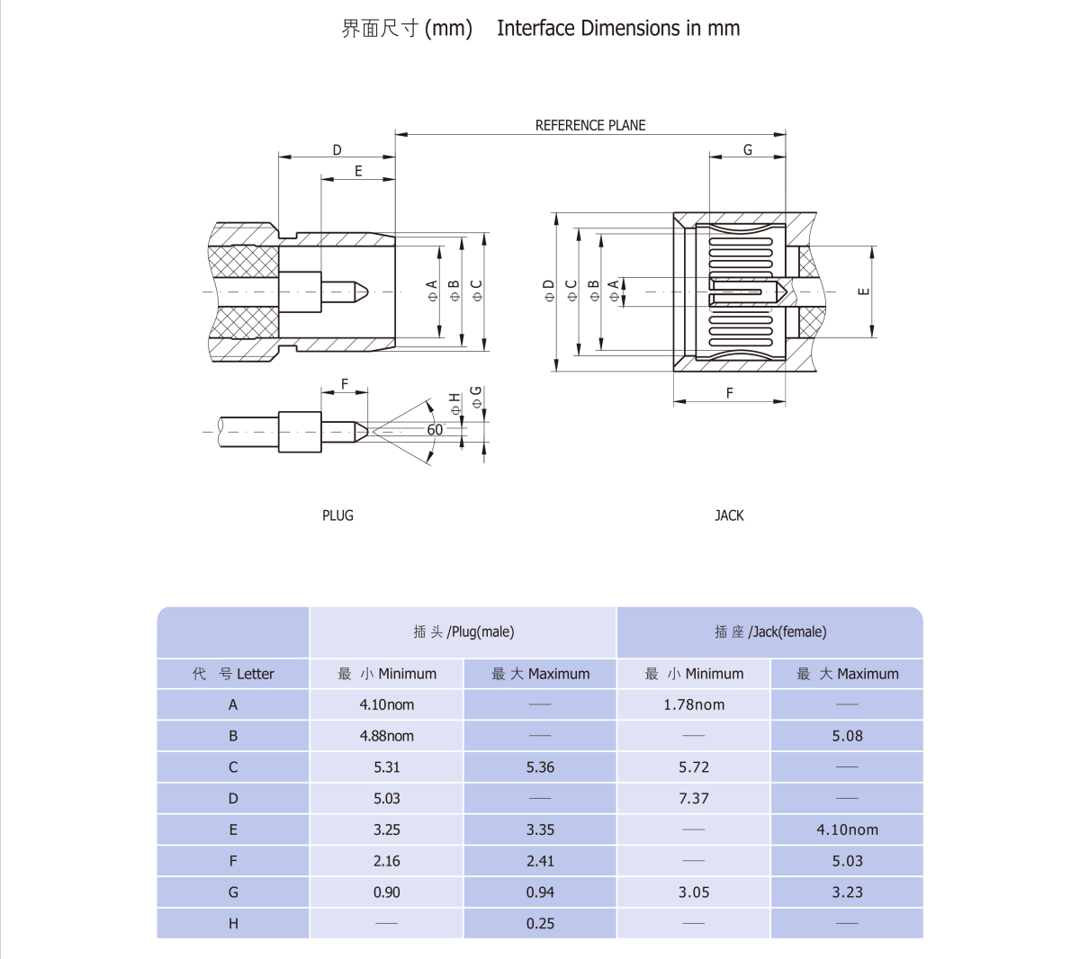 The interface dimensions and technical characteristics are in accord with the specifications of IEC 1169-33 and MIL-STD-348A/321.